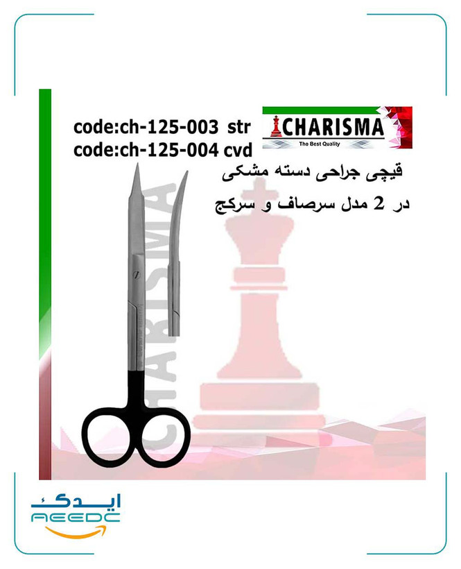 قیچی جراحی دسته مشکی کاریزما (سرصاف و سرکج)