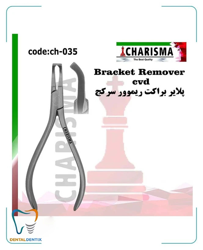 - توضیحات پلایر : برای برداشتن براکت های نصب شده روی دندان استفاده می شود. حالت نوک براکت، بین قسمت انتهایی براکت و سطح دندان قرار می گیرد و به راحتی براکت را از سطح دندان جدا می کند – سرکج – ساخته از استیل ضدزنگ-